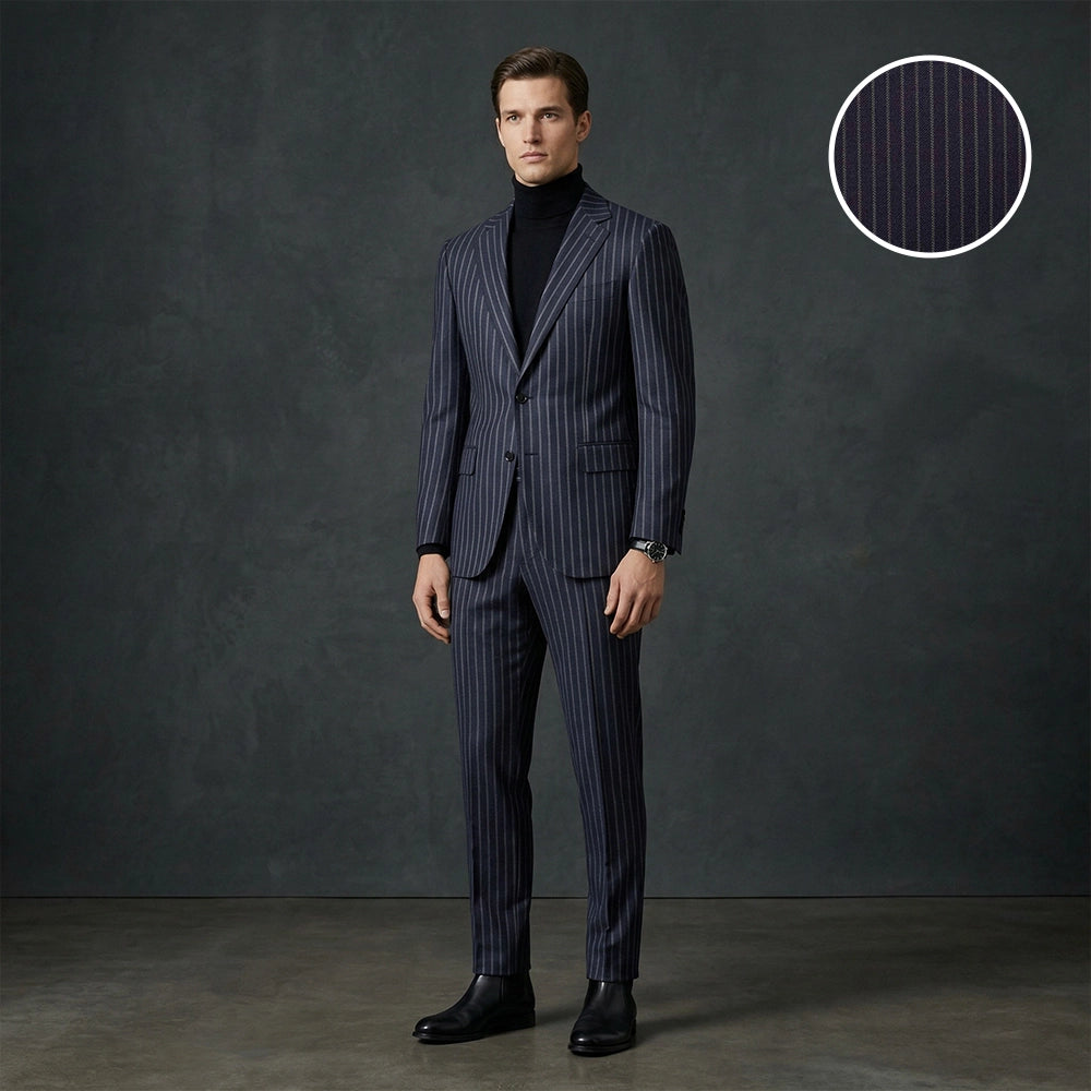 Our fabric range covers every occasion and climate, sourced from leading mills including Vitale Barberis Canonico (VBC), Guabello, Ermenegildo Zegna, Loro Piana, Angelico, Liberty, Maurizo, Vito, and MB Sartorial. During your consultation, we recommend the right cloth for your needs, from Italian worsted wools (Super 110’s to 160’s) and superfine merino (120’s, 130’s, 150’s, plus ultra-fine 15 micron options) to natural-stretch performance wool, tropical and four-season weaves, Lycra stretch suiting, and breathable luxury linen, so your bespoke suit matches your season, occasion, and comfort preferences.