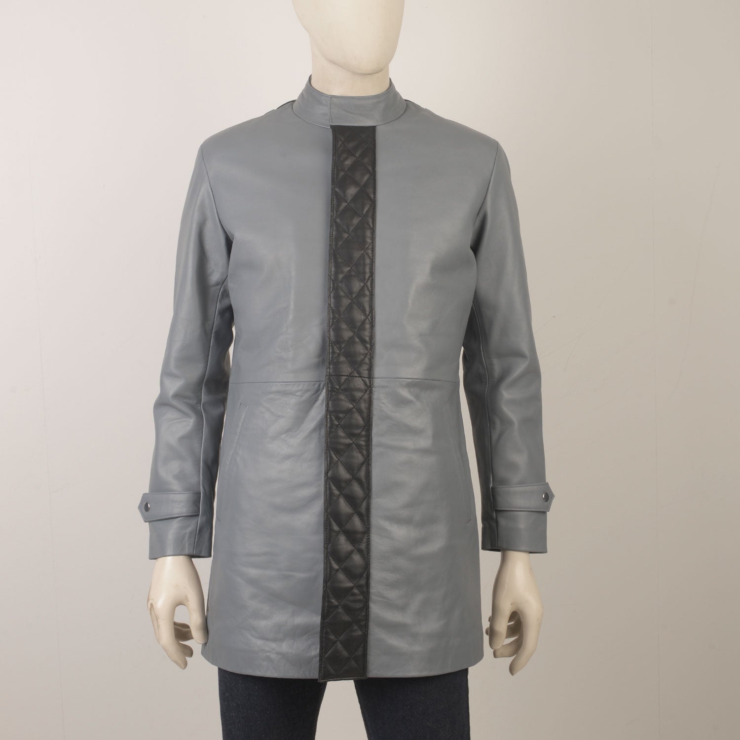 Collar to match the quilted black leather panel on the front closure placket